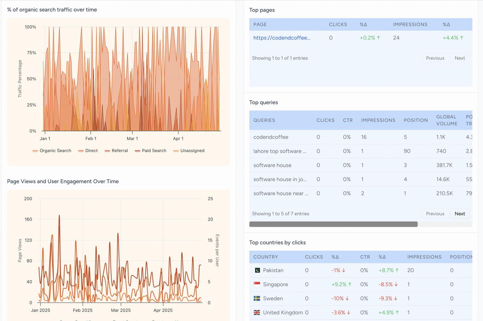 This integrated dashboard helps you understand not just how users find your site through organic search, but also what they do once they land on it, allowing you to identify keywords that drive not only traffic but also meaningful engagement and conversions.