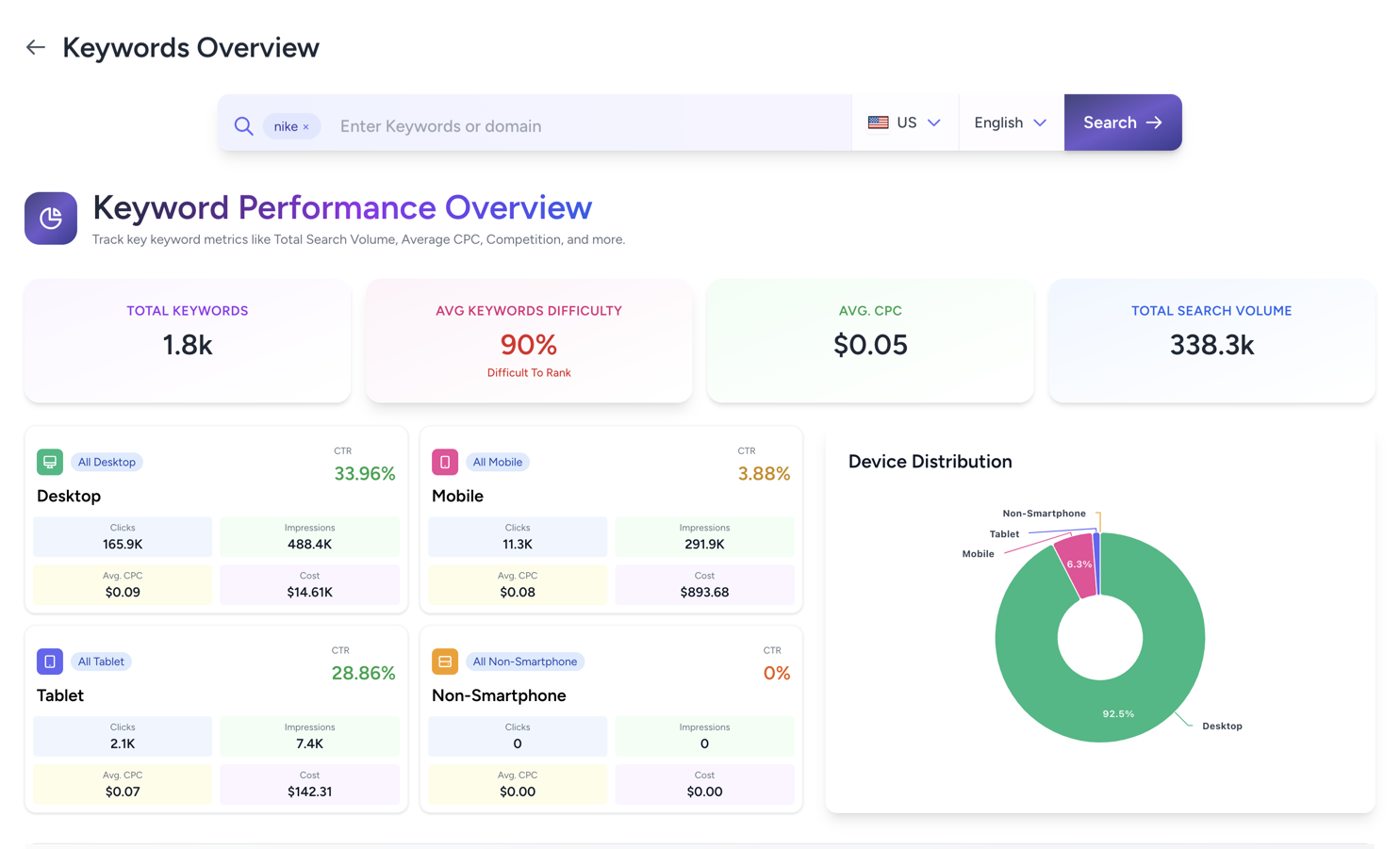 Our Bing Keyword Research tool helps you find the most valuable and relevant keywords for your content and ad campaigns.We give you essential data like search volume, CPC (Cost Per Click), and keyword difficulty so you can identify profitable opportunities with less competition.
